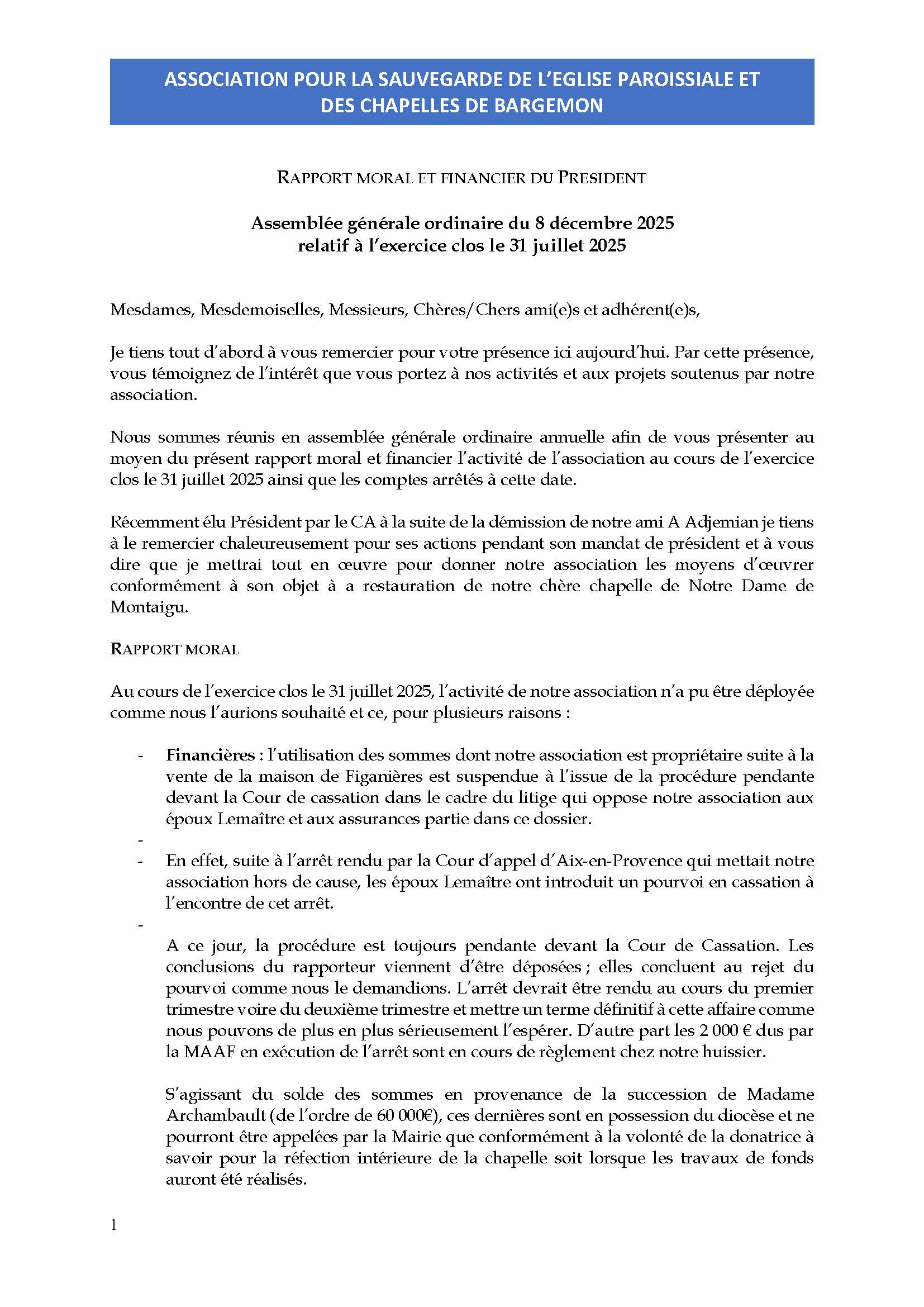 Rapports Moraux & financiers